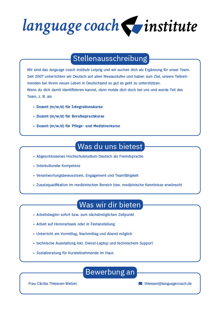 Lehrkräfte für Integrations- und Berufssprachkurse gesucht
