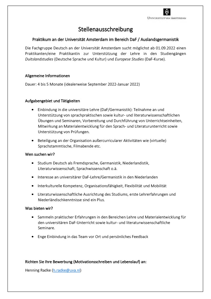 Praktika und Stellenangebote