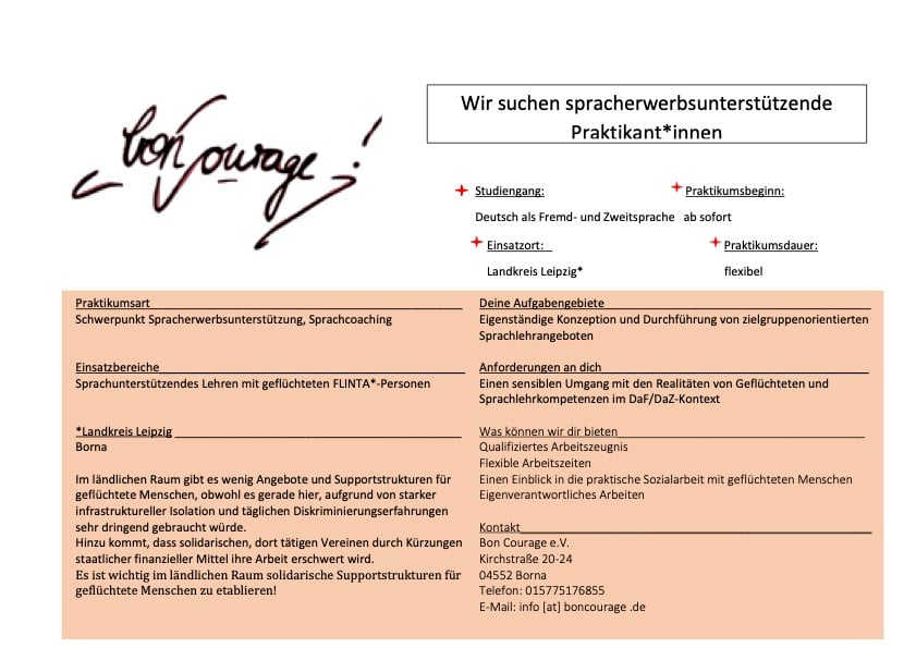 spracherwerbsunterstützende Praktikant:innen gesucht