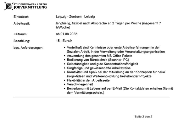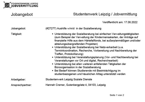 Aushilfe in der Sozialberatung gesucht