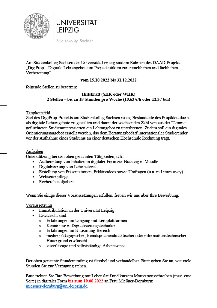 SHK-/WHK-Stelle in DAAD-Projekt zu vergeben