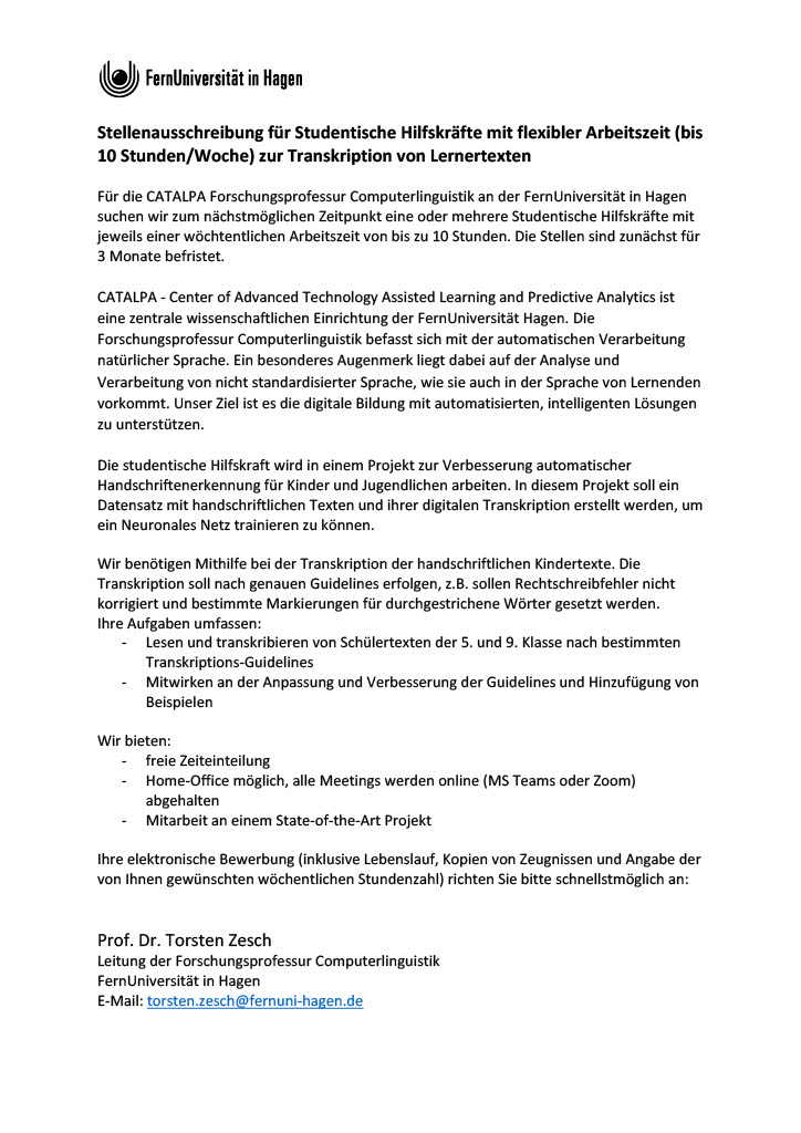 12. September 2022 SHK-Stelle zur Transkription von Lerner:innentexten zu vergeben tagPlaceholderTags: