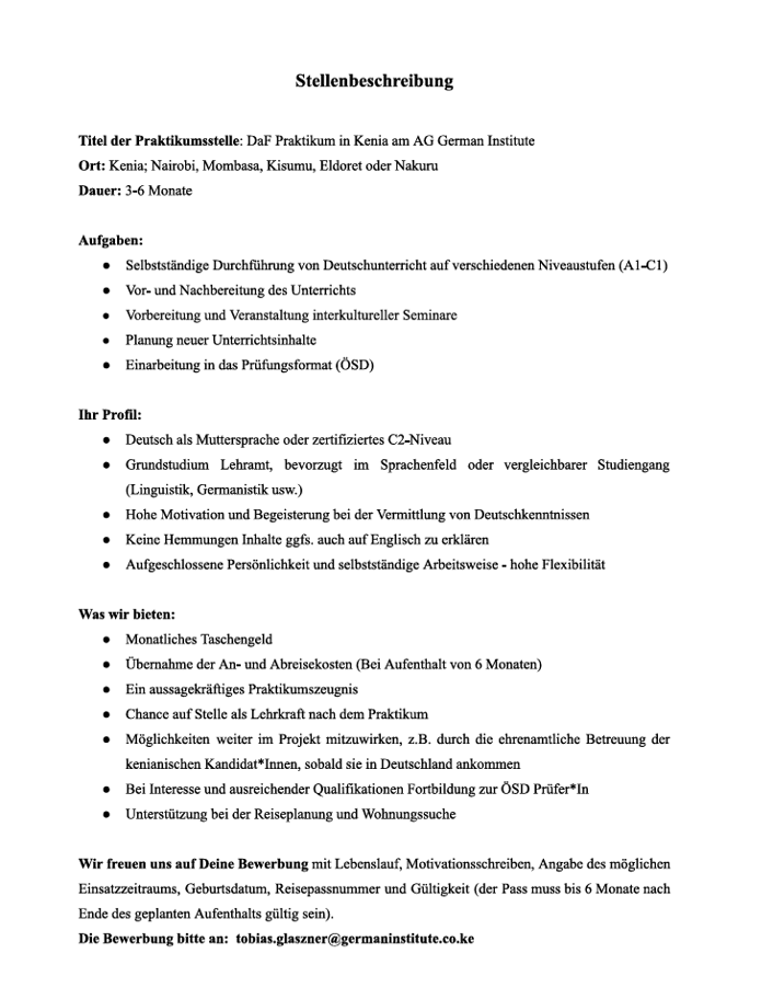 Abhängig vom Erfahrungslevel: besteht bereits Lehrerfahrung, liegt die Vergütung zwischen 600€-1000€. Besteht keine Lehrerfahrung und es handelt sich um reines Hospitieren, zahlen wir 450€ im Monat