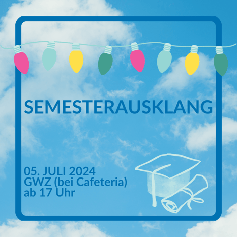 Wir feiern bei gutem Wetter am GWZ neben der Cafeteria bei den Steintischen☀️ Wenn es entgegen der Vorhersage regnen sollte, sind wir in der 2010 (Hörsaal am GWZ, Erdgeschoss).