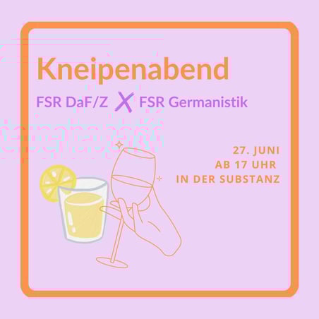 Das Semester neigt sich dem Ende und um noch einmal gemütlich zusammenzukommen und den Sommer einzuläuten, wollen wir euch herzlich zum Kneipenabend am nächsten Donnerstag (27. Juni) in der Substanz im Leipziger Osten einladen! 🥂🍹🍷☕️