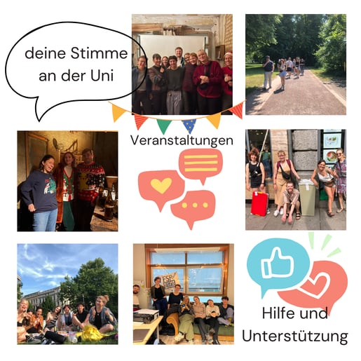Zuallererst sind wir eure Ansprechpartner:innen bei Fragen und Problemen rund um das Studium. Seien es Probleme mit Dozent:innen, Fragen zu den Prüfungen oder studienorganisatorische Unklarheiten - wir sind für euch da und stehen euch mit Rat und Tat zur Seite! Bei Fragen oder Anliegen kontaktiert uns gern über die angegebenen Möglichkeiten.